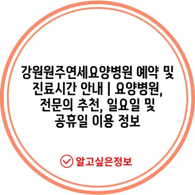 강원원주연세요양병원 예약 및 진료시간 공지 | 요양병원, 전연락 추천, 일요일 및 공휴일 이용 정보 에 대해 자주 묻는 질문 TOP 5