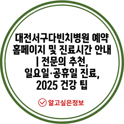 대전서구다빈치병원 예약 홈페이지 및 진료시간 공지 | 전연락 추천, 일요일·공휴일 진료, 2025 건강 팁 에 대해 자주 묻는 질문 TOP 5