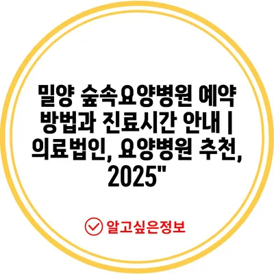 ✅ 밀양 숲속요양병원의 예약 절차와 진료시간을 한눈에 확인하세요.