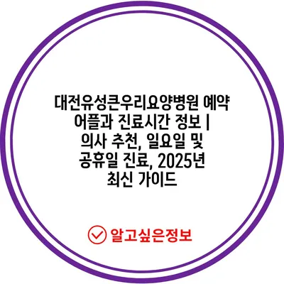 대전유성큰우리요양병원 예약 어플과 진료시간 정보 | 의사 추천, 일요일 및 공휴일 진료, 2025년 최신 설명서 에 대해 자주 묻는 질문 TOP 5