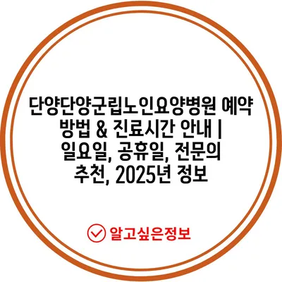 ✅ 단양단양군립노인요양병원의 예약 방법을 자세히 알아보세요.