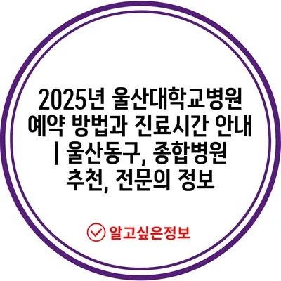 2025년 울산대학교병원 예약 방법과 진료시간 공지 | 울산동구, 종합병원 추천, 전연락 정보 에 대해 자주 묻는 질문 TOP 5