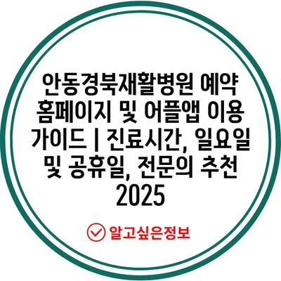 안동경북재활병원 예약 홈페이지 및 어플앱 이용 설명서 | 진료시간, 일요일 및 공휴일, 전연락 추천 2025에 대해 자주 묻는 질문 TOP 5