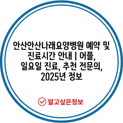 안산안산나래요양병원 예약 및 진료시간 공지 | 어플, 일요일 진료, 추천 전연락, 2025년 정보 에 대해 자주 묻는 질문 TOP 5