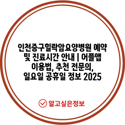 인천중구힐락암요양병원 예약 및 진료시간 공지 | 어플앱 이용법, 추천 전연락, 일요일 공휴일 정보 2025