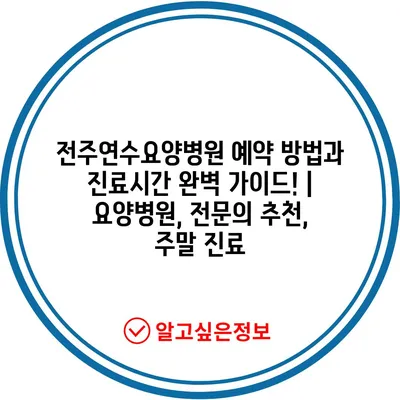 ✅ 전주연수요양병원의 진료시간과 예약 방법을 쉽게 알아보세요.