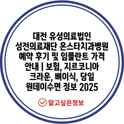 대전 유성의료법인 성전의료재단 온스타치과병원 예약 후기 및 임플란트 가격 공지 | 보험, 지르코니아 크라운, 뼈이식, 당일 원데이수면 정보 2025 에 대해 자주 묻는 질문 TOP 5