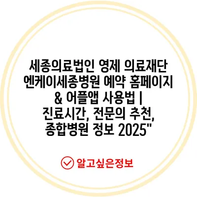 세종의료법인 영제 의료재단 엔케이세종병원 예약 홈페이지 & 어플앱 사용법 | 진료시간, 전연락 추천, 종합병원 정보 2025″ 에 대해 자주 묻는 질문 TOP 5