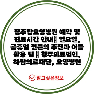 청주탑요양병원 예약 및 진료시간 공지| 일요일, 공휴일 전연락 추천과 어플 활용 팁 | 청주의료법인, 하람의료재단, 요양병원 에 대해 자주 묻는 질문 TOP 5