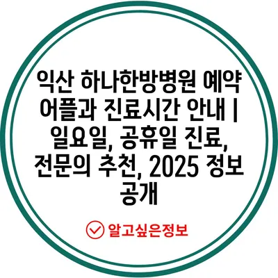 ✅ 익산 하나한방병원의 진료시간과 예약 방법을 자세히 알아보세요.