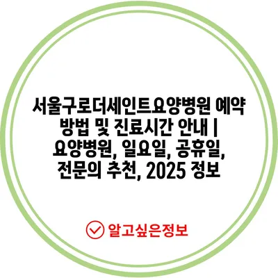 서울구로더세인트요양병원 예약 방법 및 진료시간 공지 | 요양병원, 일요일, 공휴일, 전연락 추천, 2025 정보 에 대해 자주 묻는 질문 TOP 5