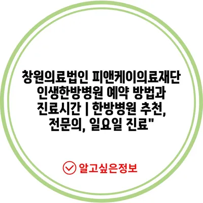 창원의료법인 피앤케이의료재단 인생한방병원 예약 방법과 진료시간 | 한방병원 추천, 전연락, 일요일 진료”에 대해 자주 묻는 질문 TOP 5