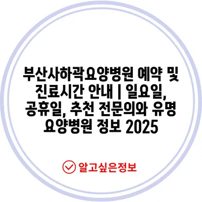 부산사하곽요양병원 예약 및 진료시간 공지 | 일요일, 공휴일, 추천 전연락와 유명 요양병원 정보 2025