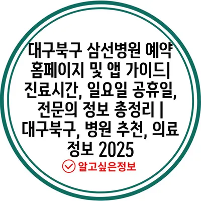 대구북구 삼선병원 예약 홈페이지 및 앱 설명서| 진료시간, 일요일 공휴일, 전연락 정보 총정리 | 대구북구, 병원 추천, 의료 정보 2025