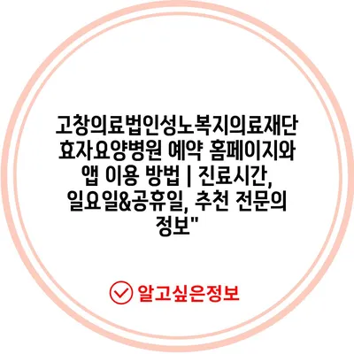 고창의료법인성노복지의료재단 효자요양병원 예약 홈페이지와 앱 이용 방법 | 진료시간, 일요일&공휴일, 추천 전연락 정보에 대해 자주 묻는 질문 TOP 5
