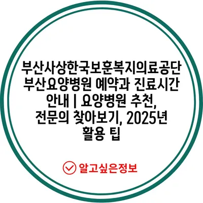 부산사상한국보훈복지의료공단 부산요양병원 예약과 진료시간 공지 | 요양병원 추천, 전연락 찾아보기, 2025년 활용 팁 에 대해 자주 묻는 질문 TOP 5