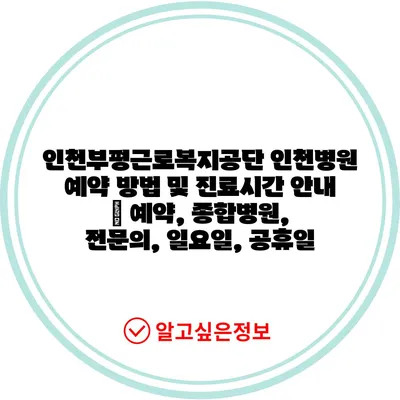 ✅ 인천부평근로복지공단 인천병원의 예약 방법과 진료시간을 자세히 알아보세요.