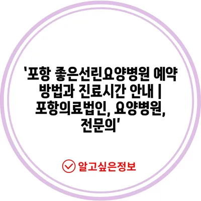 ✅ 포항 좋은선린요양병원의 예약 방법과 진료시간을 알아보세요.