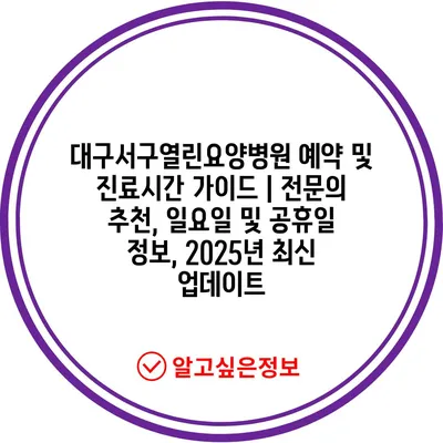대구서구열린요양병원 예약 및 진료시간 설명서 | 전연락 추천, 일요일 및 공휴일 정보, 2025년 최신 업데이트 에 대해 자주 묻는 질문 TOP 5