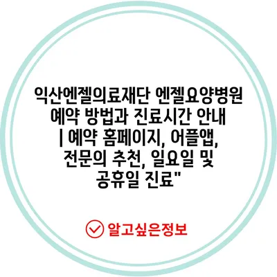 ✅ 익산엔젤의료재단의 예약 방법을 간단히 알아보세요!