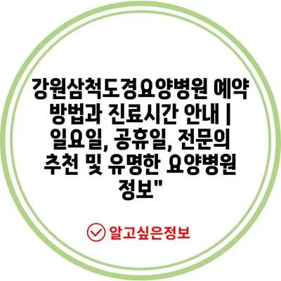 ✅ 강원삼척도경요양병원의 예약 절차와 진료시간을 자세히 알아보세요.