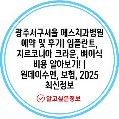 광주서구서울 에스치과병원 예약 및 후기| 임플란트, 지르코니아 크라운, 뼈이식 비용 알아보기! | 원데이수면, 보험, 2025 최신내용을 소개합니다.