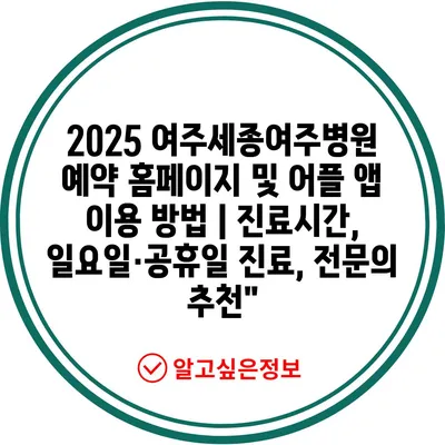 2025 여주세종여주병원 예약 홈페이지 및 어플 앱 이용 방법 | 진료시간, 일요일·공휴일 진료, 전연락 추천” 에 대해 자주 묻는 질문 TOP 5