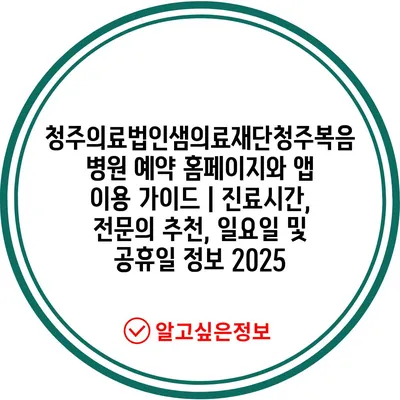 청주의료법인샘의료재단청주복음병원 예약 홈페이지와 앱 이용 가이드 | 진료시간, 전문의 추천, 일요일 및 공휴일 정보 2025