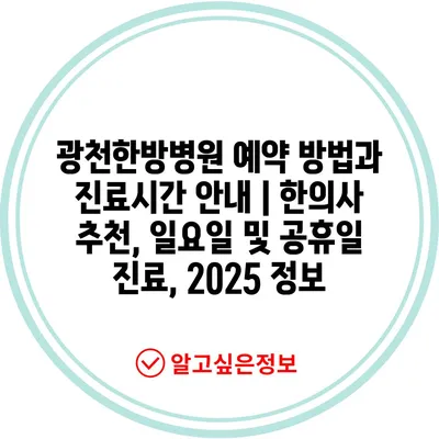광천한방병원 예약 방법과 진료시간 공지 | 한의사 추천, 일요일 및 공휴일 진료, 2025 정보 에 대해 자주 묻는 질문 TOP 5