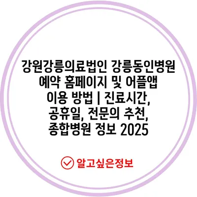 강원강릉의료법인 강릉동인병원 예약 홈페이지 및 어플앱 이용 방법 | 진료시간, 공휴일, 전연락 추천, 종합병원 정보 2025에 대해 알아보겠습니다.