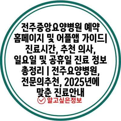전주중앙요양병원 예약 홈페이지 및 어플앱 설명서| 진료시간, 추천 의사, 일요일 및 공휴일 진료 정보 총정리 | 전주요양병원, 전연락추천, 2025년에 맞춘 진료공지 에 대해 자주 묻는 질문 TOP 5