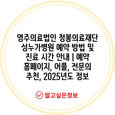 영주의료법인 청봉의료재단 성누가병원 예약 방법 및 진료 시간 공지 | 예약 홈페이지, 어플, 전연락 추천, 2025년도 정보 에 대해 자주 묻는 질문 TOP 5