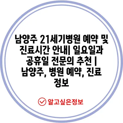 ✅ 남양주 21세기병원 예약 방법과 진료시간을 지금 바로 알아보세요!
