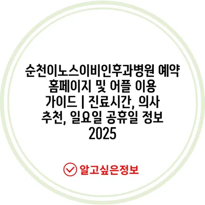 순천이노스이비인후과병원 예약 홈페이지 및 어플 이용 설명서 | 진료시간, 의사 추천, 일요일 공휴일 정보 2025