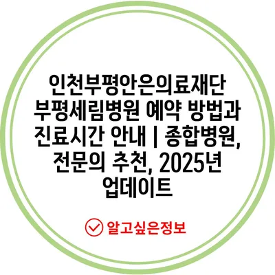 인천부평안은의료재단 부평세림병원 예약 방법과 진료시간 공지 | 종합병원, 전연락 추천, 2025년 업데이트 에 대해 자주 묻는 질문 TOP 5