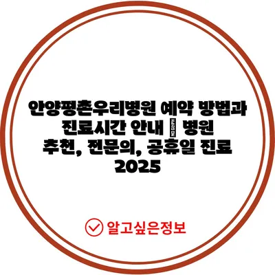 안양평촌우리병원 예약 방법과 진료시간 공지 | 병원 추천, 전연락, 공휴일 진료 2025 에 대해 자주 묻는 질문 TOP 5