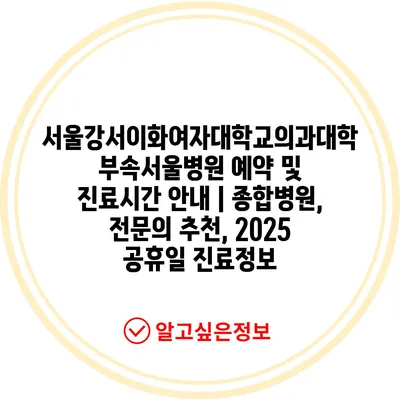 서울강서이화여자대학교의과대학부속서울병원 예약 및 진료시간 공지 | 종합병원, 전연락 추천, 2025 공휴일 진료정보 에 대해 자주 묻는 질문 TOP 5
