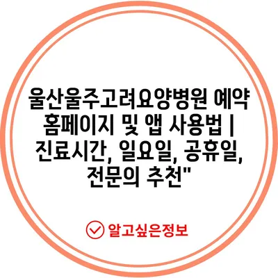 ✅ 울산울주고려요양병원 예약 방법을 자세히 알아보세요.
