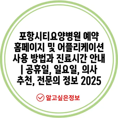 ✅ 포항시티요양병원 예약 방법을 자세히 알아보세요.