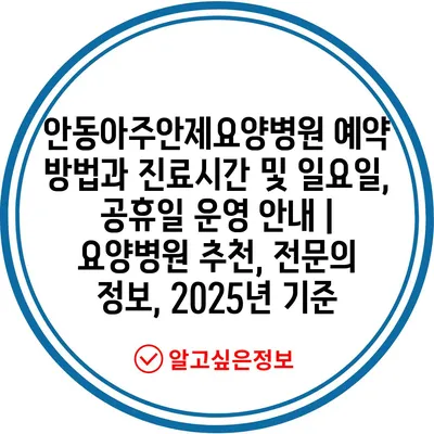 안동아주안제요양병원 예약 방법과 진료시간 및 일요일, 공휴일 운영 공지 | 요양병원 추천, 전연락 정보, 2025년 기준 에 대해 자주 묻는 질문 TOP 5