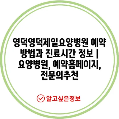 ✅ 영덕영덕제일요양병원의 예약 방법과 진료시간을 자세히 알아보세요.
