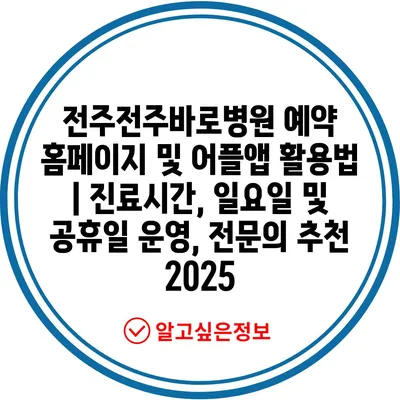전주전주바로병원 예약 홈페이지 및 어플앱 활용법 | 진료시간, 일요일 및 공휴일 운영, 전연락 추천 2025 에 대해 자주 묻는 질문 TOP 5