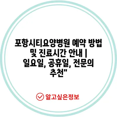 ✅ 포항시티요양병원의 예약 방법과 진료시간을 자세히 알아보세요.