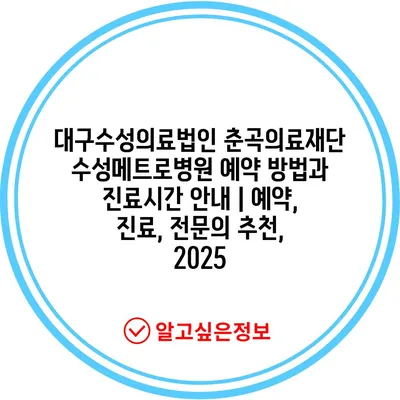 대구수성의료법인 춘곡의료재단 수성메트로병원 예약 방법과 진료시간 공지 | 예약, 진료, 전연락 추천, 2025 에 대해 자주 묻는 질문 TOP 5