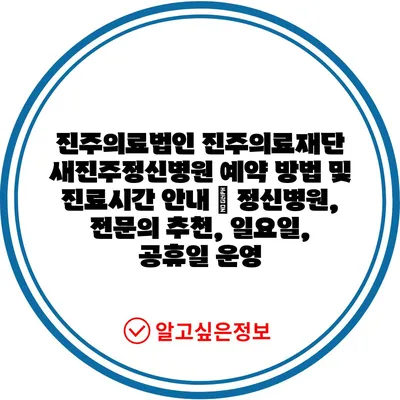 새진주정신병원 예약 방법과 진료시간을 자세히 알아보세요.
