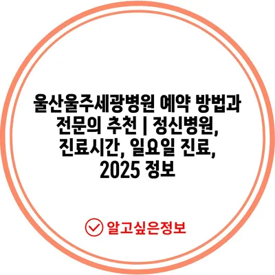 울산울주세광병원 예약 방법과 전문의 추천 | 정신병원, 진료시간, 일요일 진료, 2025 정보