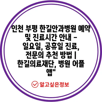 인천 부평 한길안과병원 예약 및 진료시간 공지 – 일요일, 공휴일 진료, 전연락 추천 방법 | 한길의료재단, 병원 어플 앱