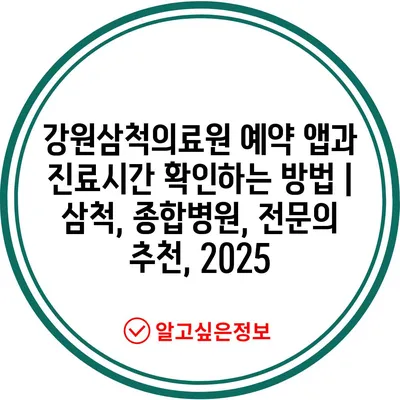 ✅ 삼척의료원 예약과 진료시간을 쉽게 확인하는 방법을 알아보세요.