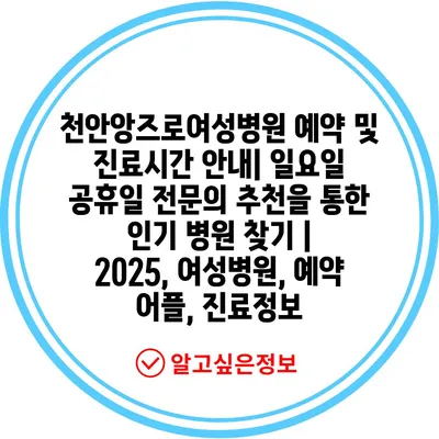 천안앙즈로여성병원 예약 및 진료시간 공지| 일요일 공휴일 전연락 추천을 통한 인기 병원 찾기 | 2025, 여성병원, 예약 어플, 진료정보 에 대해 자주 묻는 질문 TOP 5