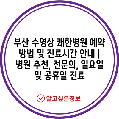 ✅ 부산 수영상 쾌한병원의 진료시간과 예약 방법을 지금 확인해 보세요!